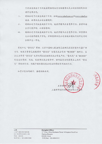 美国鲁沃夫公司的感谢信