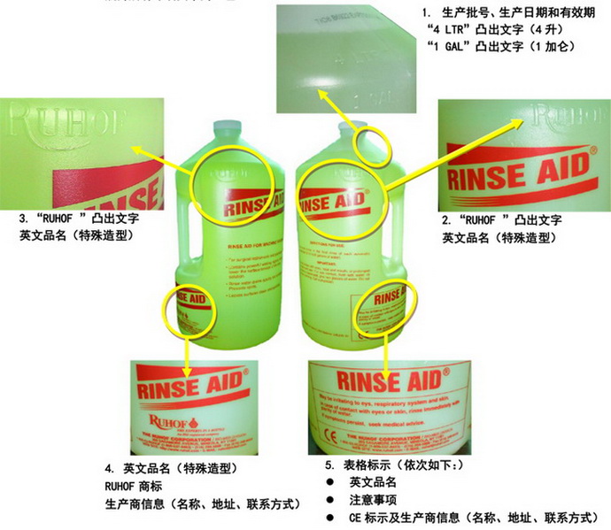 RINSE AID®防止水垢和矿物质沉积粘附在手术器械和玻璃器皿上。RINSE AID®含有的强力润丝剂能降低水的表面张力,使排水快速彻底。RINSE AID®可避免硬水造成的白斑问题,无残留,并协助干燥,使器械及玻璃器皿表面亮洁干净。